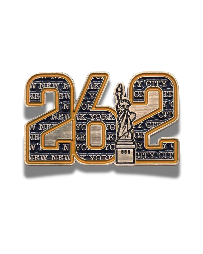 NEW! Celebrate your marathon through NYC with this not-to-be-missed pin. This large copper edged enamel pin is a nod to Lady Liberty's construction. Zoom in to catch the masterful details in each number.
